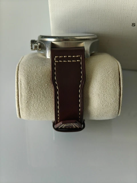 La montre IWC Pilot Chronograph Le Petit Prince IW377714 (2018) est une montre-bracelet luxueuse dotée d’un cadran bleu soleillé orné d’index flèches, de chiffres arabes et de bâtons. Ce modèle en acier inoxydable de 43 mm est une montre classique et élégante, idéale pour les occasions habillées comme décontractées. Elle possède une lunette argentée lisse, un fond plein et un mouvement mécanique à 25 rubis. Étanche à 60 mètres et équipée d’un bracelet en cuir marron deux pièces, cette montre IWC Pilot est un garde-temps raffiné et fiable pour les hommes appréciant le savoir-faire d’exception et le design intemporel.