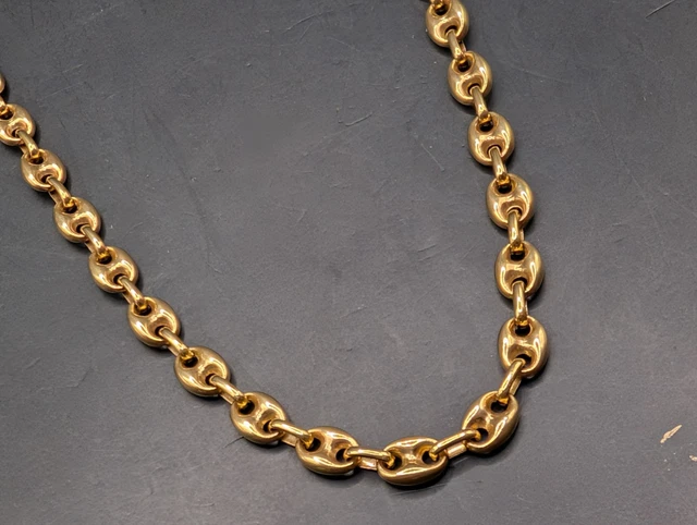 Italie 18K 750 Chaîne à maillons marins en or massif avec motif ancre, poids lourd 29,8 grammes
