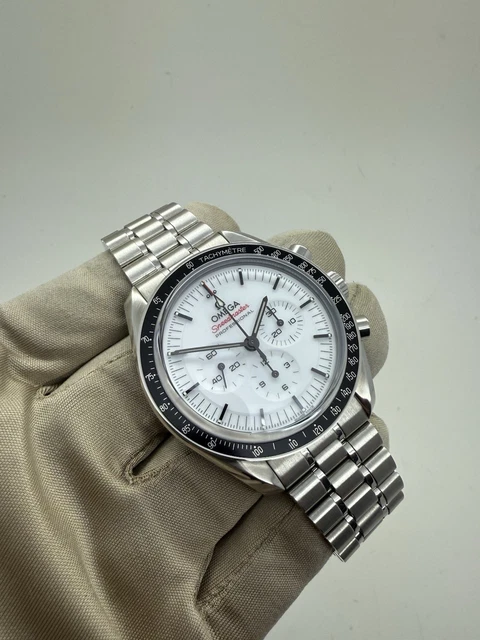 Montre chronographe Omega Speedmaster 42 mm, cadran blanc, année 2024, référence 310.30.42.50.04.001 B+P. État : bon (occasion).
