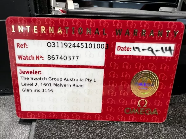 Omega Speedmaster Darkside of the Moon, complète avec boîte et papiers. La montre est en excellent état, hormis une légère usure du revêtement antireflet sur le dessus du cadran autour de 12 heures, comme le montre la photo 2.