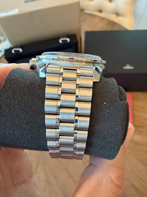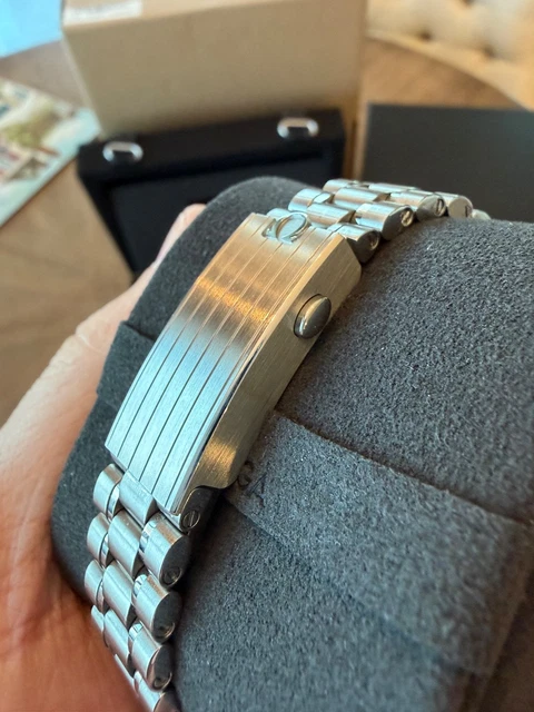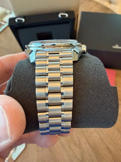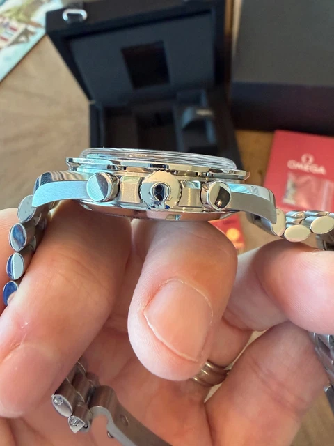 Montre Omega Speedmaster Professional Sapphire Sandwich en excellent état, pratiquement neuve, sans aucun défaut. Livrée avec boîte, papiers, cartes de garantie, étiquettes et maillons supplémentaires.